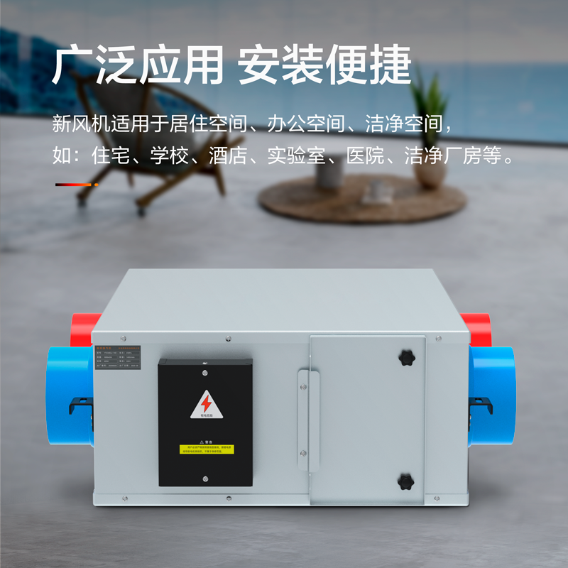 新風換氣機是根據在密閉的室內一側送風另一側引風,則在室內會形成“新風流動場”的原理進行設計研制的。它依靠機械送風、引風,強迫在系統內形成新風流動場。是一種時刻保持室內空氣潔凈清新的新型環保電器。這種獨立的室內空氣置換、凈化循環系統,能在排除室內的污染空氣的同時,輸入自然新鮮空氣,將輸入室內的新風先經過濾、殺菌、加熱、增氧等多項處理。