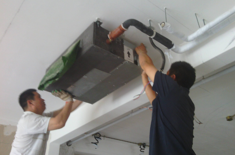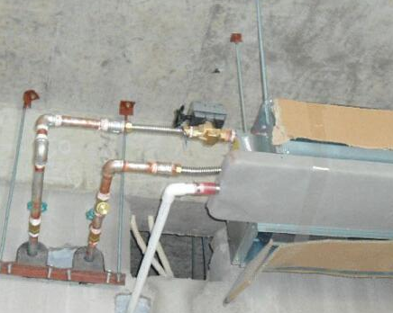 同時(shí),在安裝前與其他專業(yè)協(xié)調(diào),確定連接進(jìn)出水管的標(biāo)高和冷凝水管的坡度。