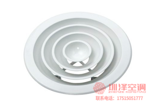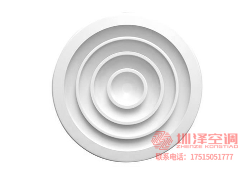 1、圓形散流器是多層錐形結構,通常安裝在寒冷和溫暖房間的天花板上。其送風氣流為附著式,具有內感好、送風溫差大、送風氣流均勻、抑制體感氣流等特點。